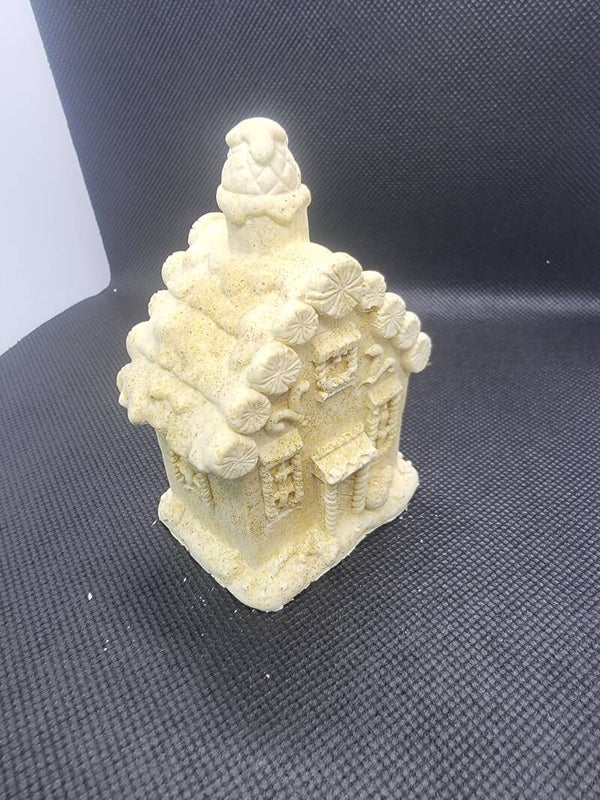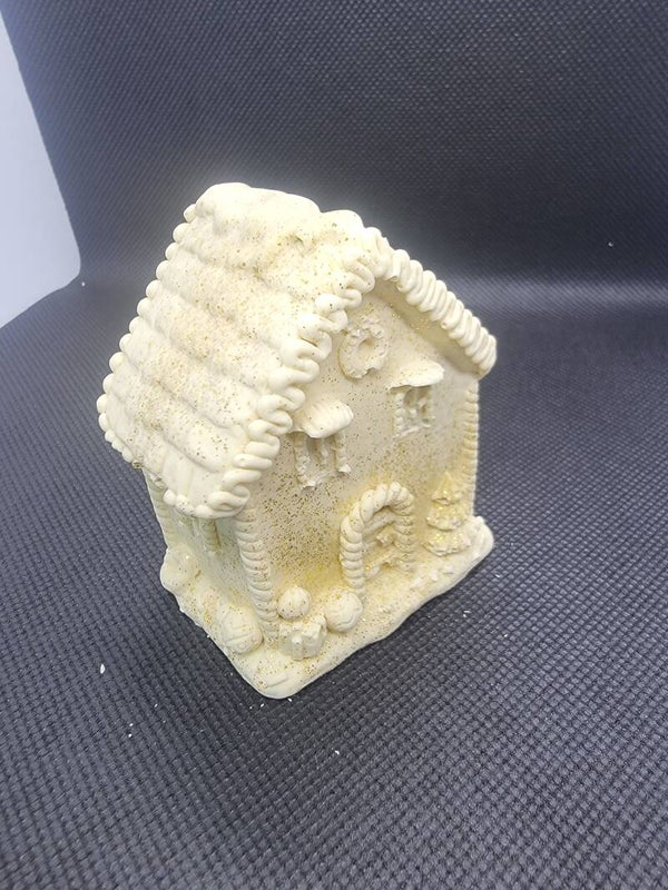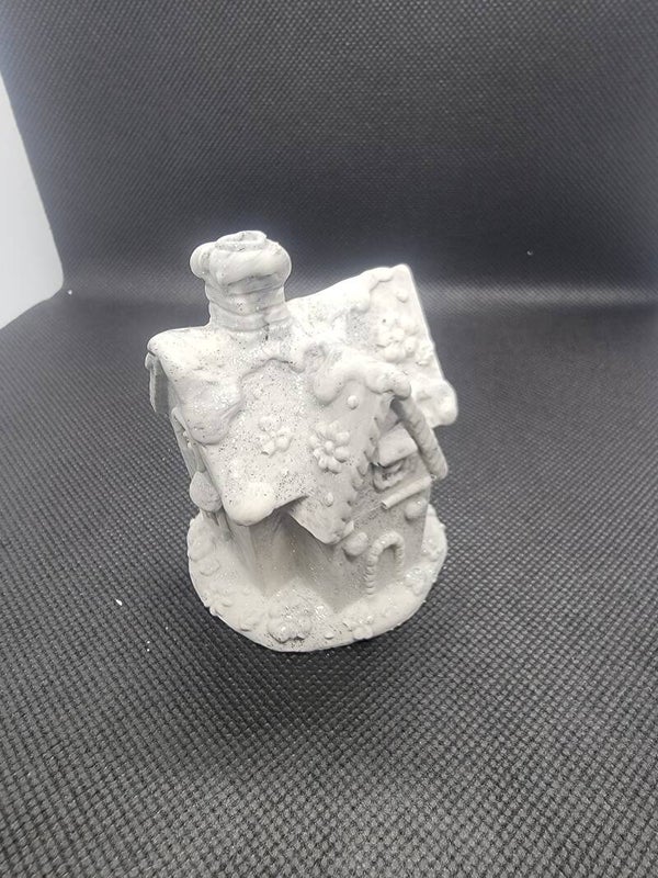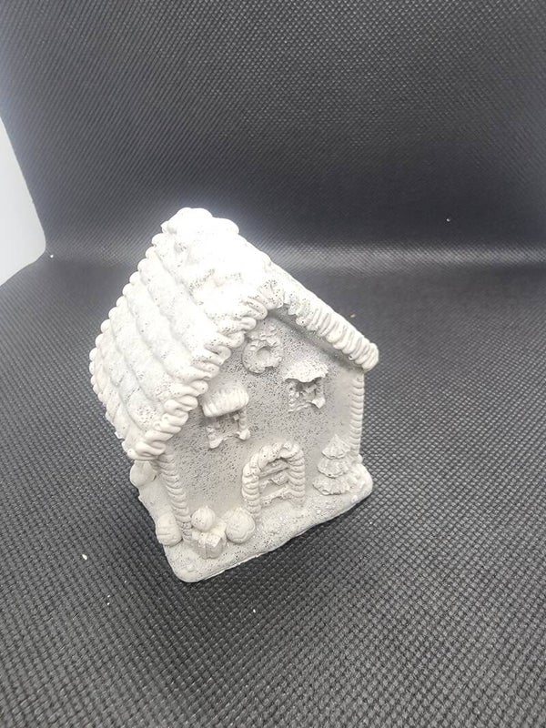 Maison de Noël en jesmonite légèrement pailletées (hauteur entre 7 et 9 cm)